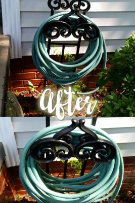 And seriously- add some curb appeal by adding a decorate garden hose stand. It was one of those purchases that I was on the fence about, being frugal and all, but it's a purchase I haven't regretted. It makes the front entry look much better with the water hose wound around something easy on the eye, and it takes down my worry about a snake or other critter being curled up in one of those boxes where you reel in the water hose and then crank it out again.